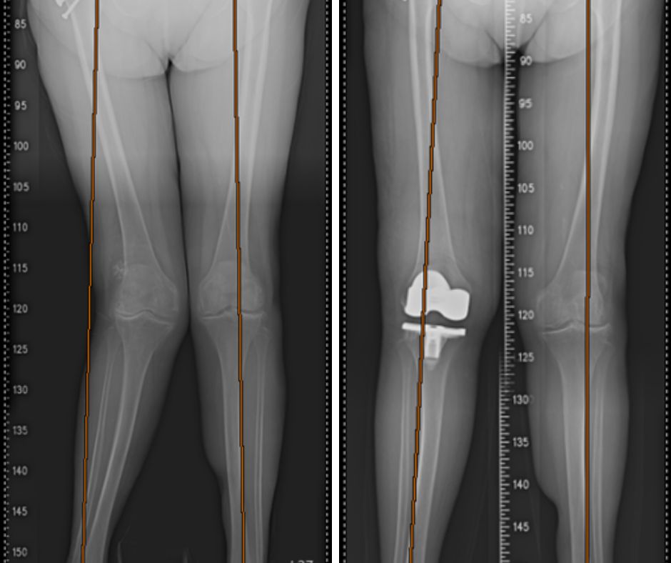患者X型腿置入人工關節後,膝蓋活動起來非常平順,不再互相碰撞。